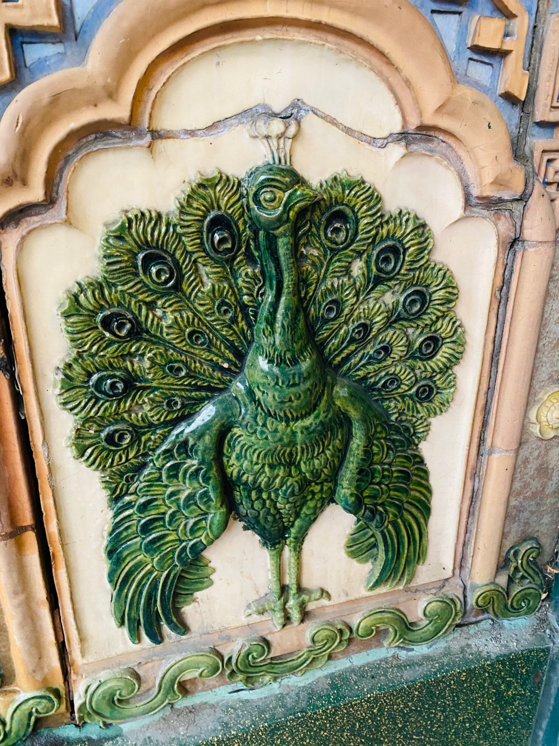 My favorite animal: peacocks. They are so fancy! I spotted this beauty on a random wall as we walked past.ย  ย Gorgeous.