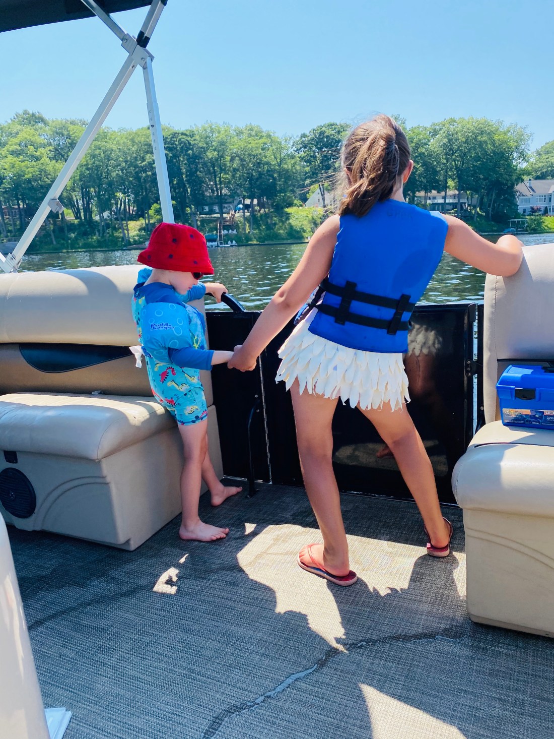 Pontoonin’!  Always drinking hot coffee, even in 90 degree weather 🙂