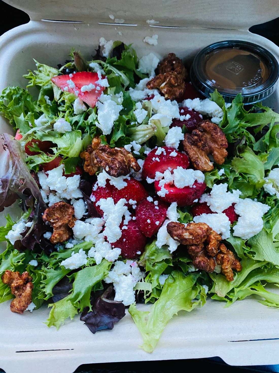 And now I present to you the most delicious meal of the trip.  Goat cheese, strawberries, walnuts, maple balsamic vinaigrette, and added grilled chicken breast.  OMG.  I loved it so much that I went back a few days later and ordered a second one to go to have for lunch the following day!  Here is a link to the restaurant if you are ever in the area.  DELICIOUS.