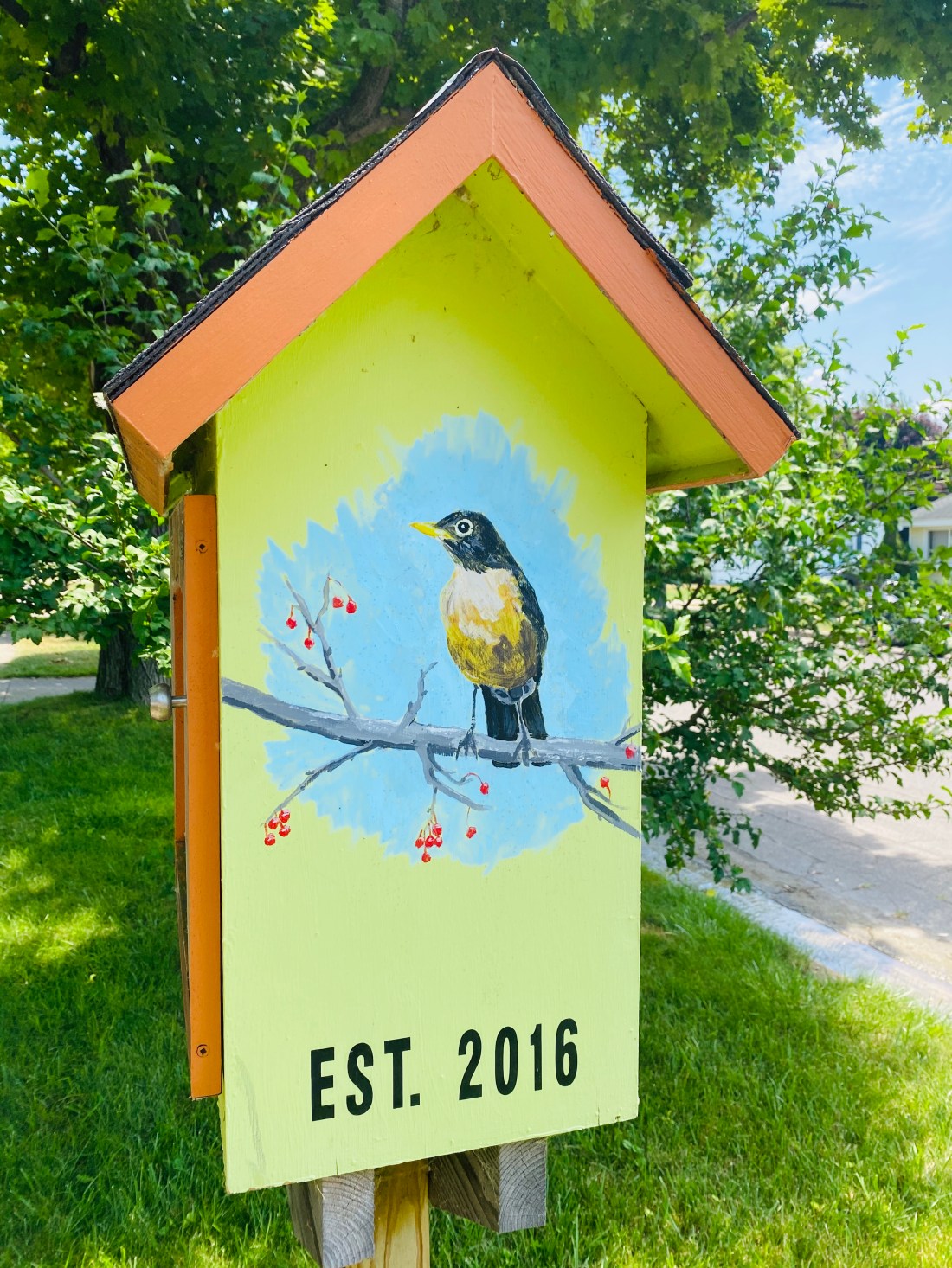My family totally indulged me when I yelled “I SEE A LITTLE FREE LIBRARY!”  The 3 of them immediately pulled over to wait for me as I turned my bike around and headed straight back to this little gem: