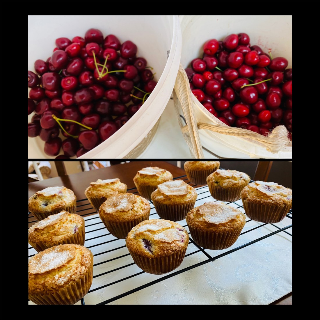 Michigan cherries have been turned into Illinois muffins!  My husband and my kids say they are the best muffins they have ever had!  Mama for the WIN!  🙂 🙂 🙂