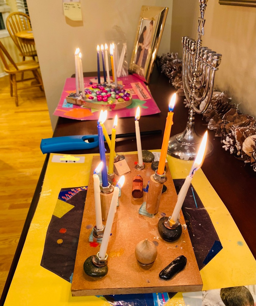 Speaking of candles, HAPPY HANUKKAH to those who celebrate! Here are our beautiful menorahs, made by my beautiful children: