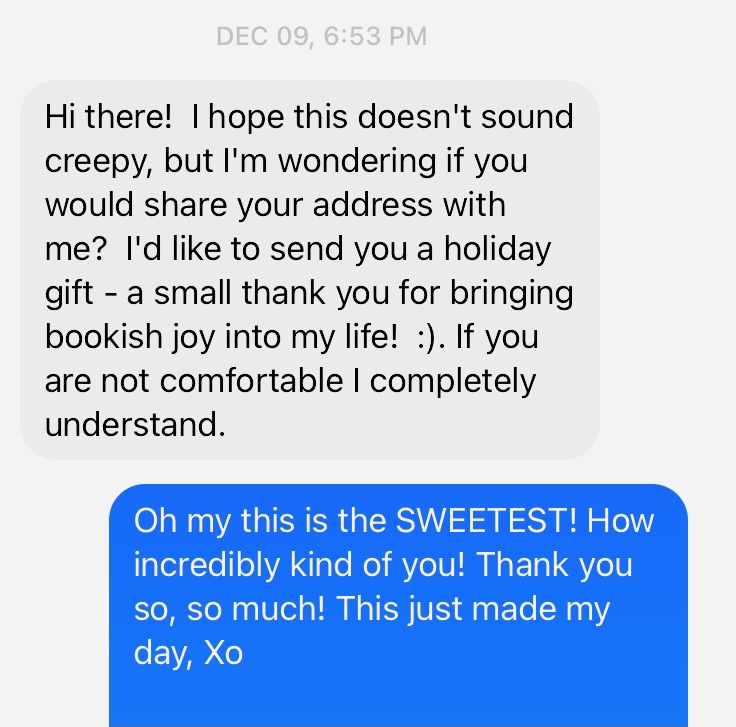 Blog readers have sent me gifts in the past. Books, candles, bookmarks, and more! Every single time it happens, I’m completely blown away. How wonderful are people? More specifically, how wonderful are my blog readers???