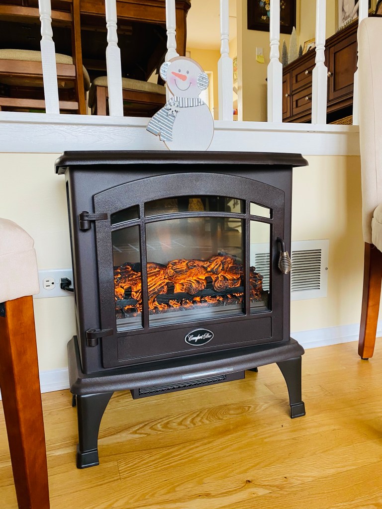 So we have a real fireplace and I hate it. Give me an electric fireplace any day over the real deal! No smelly ash, nothing to clean, no logs to worry about. A simple switch to “ON” and that’s all? YES PLEASE!