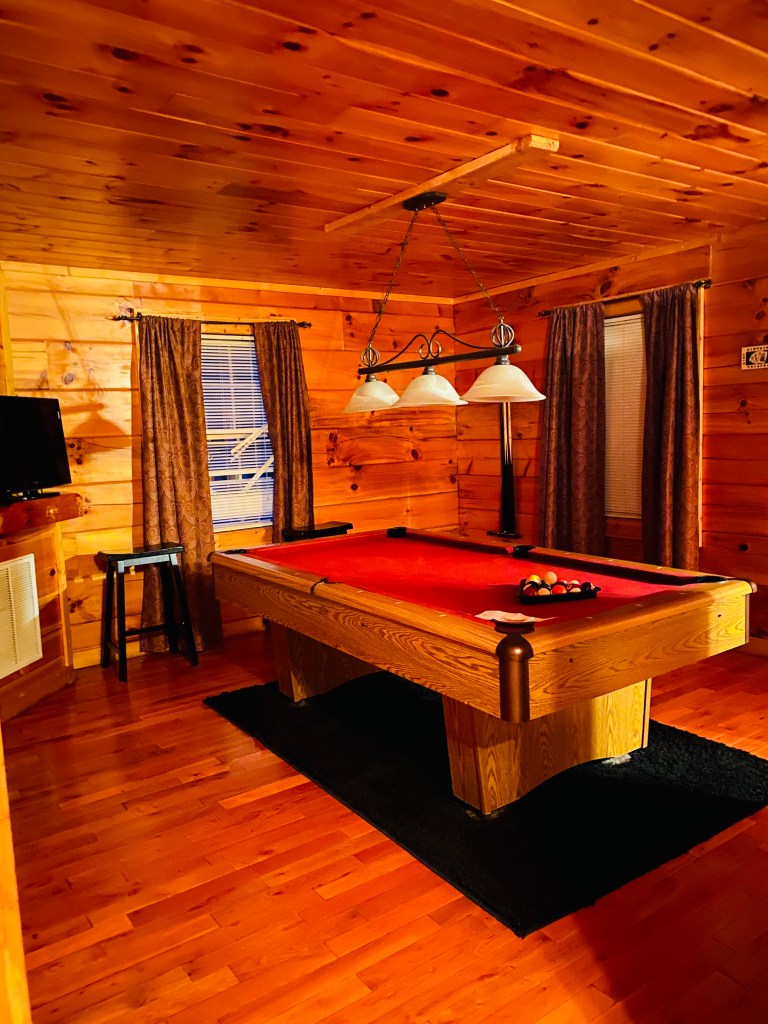 Our log cabin was BEAUTIFUL. It was completely private and quite literally on top of a mountain. It had an indoor pool (!!!), 2 hot tubs, a pool table, a fireplace, 2 balconies, and a Christmas tree! It was gorgeous and it smelled absolutely divine.