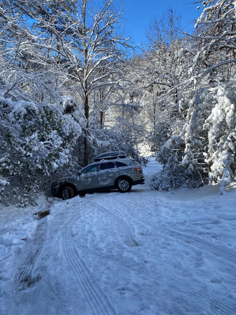 So that’s when things started to get a bit…interesting. Our car was stuck, we were stuck, and our food supply was quickly dwindling. Instacart wasn’t delievering, restaurants weren’t delivering, local grocery stores weren’t delivering. Grubhub, Ubereats, Door Dash…NOTHING. We desperatly tried and tried to place orders but soon after they were placed, they would get canceled. Yet we kept trying because we very literally had no choice. Roadside Assistance and all local towing companies were completely backed up. Cars were literally stuck EVERYWHERE! Blocking streets, blocking mountain paths, blocking everything. We very literally couldn’t leave and had absolutely nobody who could help us. So thankful that the cabin management company allowed for us to stay an an extra night. We truly had no way to leave!