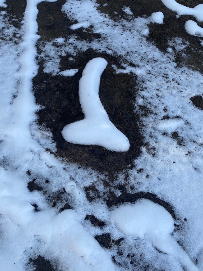 If you know me in real life you know that I always try to find the humor in every situation. The snow shaped like a penis outside of our cabin made me smile!
