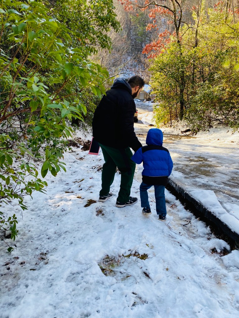 Once Jon loaded the car, he had to help the kids and I make our way down the ridiculously icy driveway. It was scary.