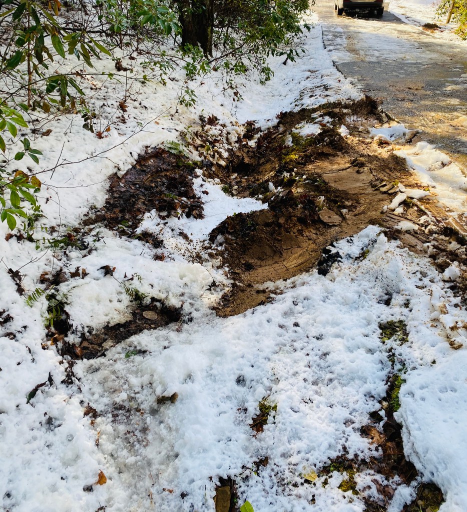 We spent the entire morning once again on our phones trying to find a towing service to come and help us to get our car out of the ditch. A few claimed that they would get to us…as soon as they could. It did not look promising. Jon spent time scraping 1/4 of the massive driveway with a tiny windshield ICE SCRAPER because there wasn’t a shovel anywhere to be found. It was nuts!